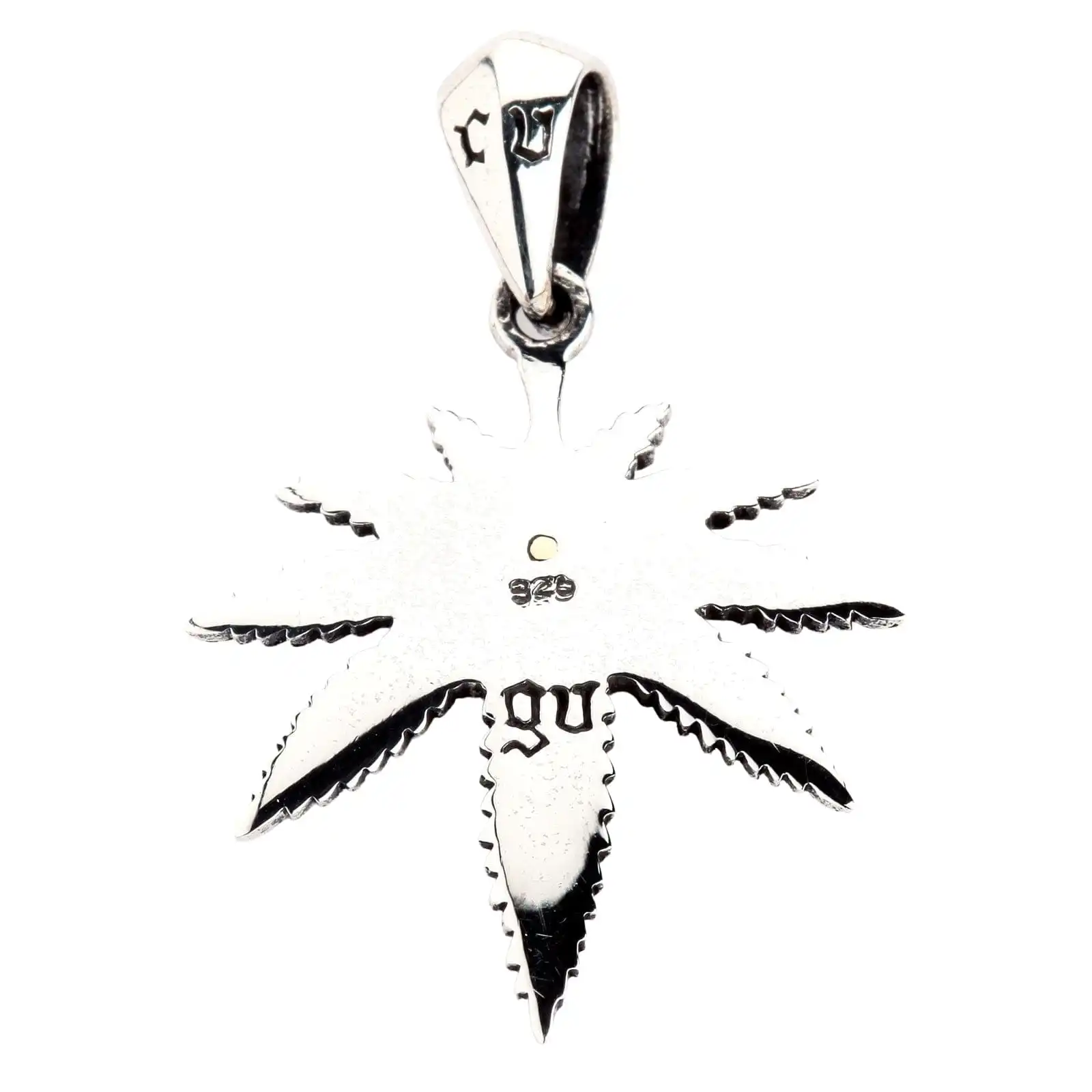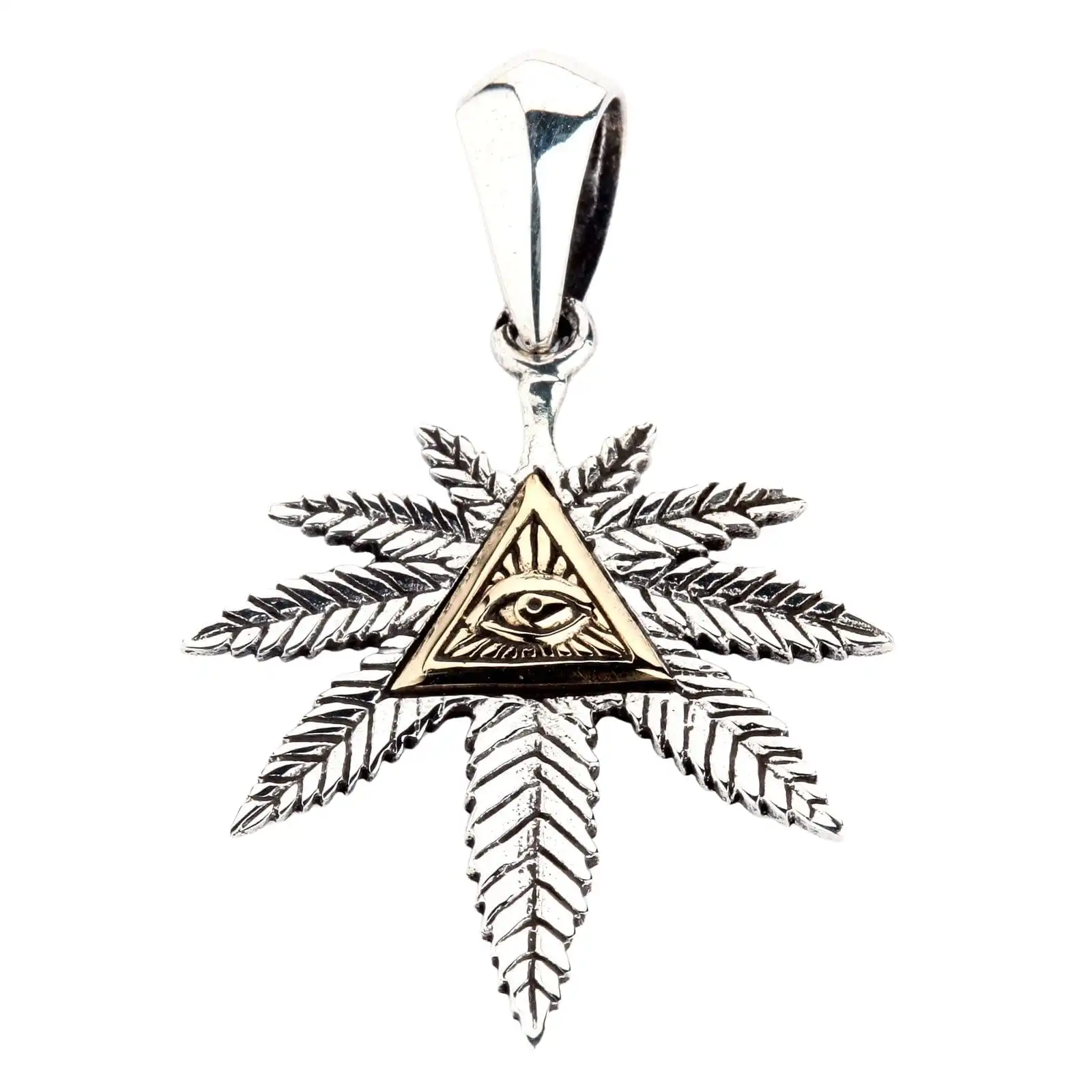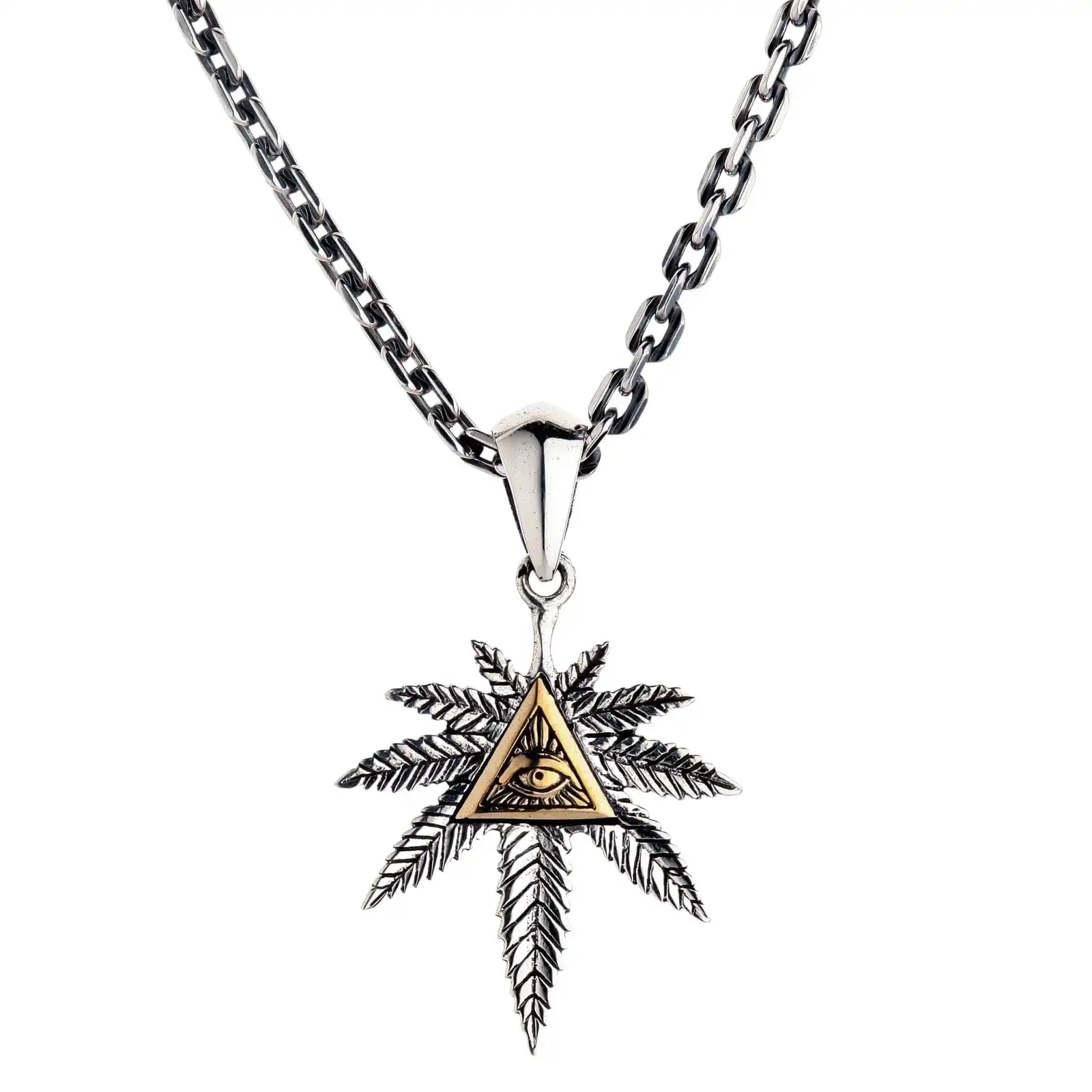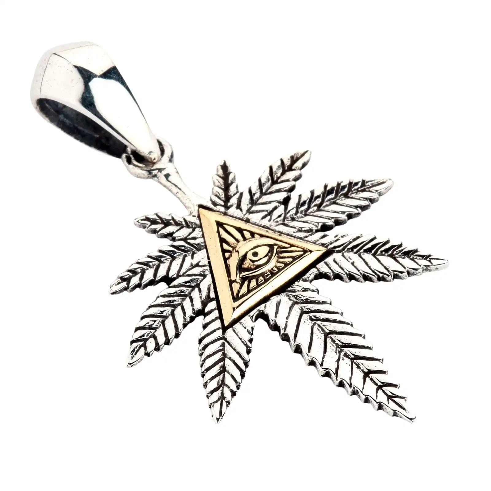 Sterling Silver Brass Eye of Providence Marijuana Pendant Necklace