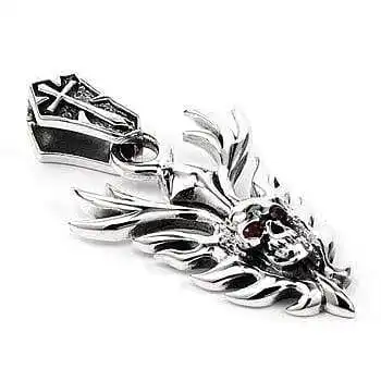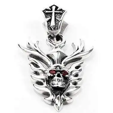 FLAME BLADE GARNET EYES SKULL STERLING SILVER BIKER PENDANT ~BRAND NEW
