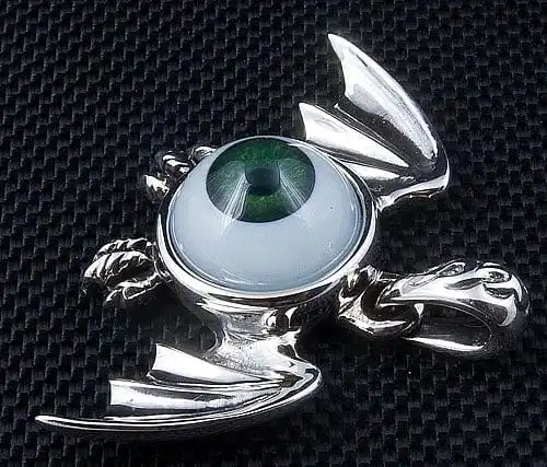 This particular design of the All-Seeing Eye draws inspiration from the von Dutch’s flying eyeball, one of the most recognizable symbols in the biker subculture. It even has wings! In Gothic, wings signify the divine and spiritual aspects of human life. More specifically, wings refer to angels, God’s messengers. However, in this pendant, we stepped away from this meaning. Instead, we depicted dragon wings … and dragon claws. Dragons are another common motif in Gothic. It represents primal forces of nature, power, run riot, and strength.