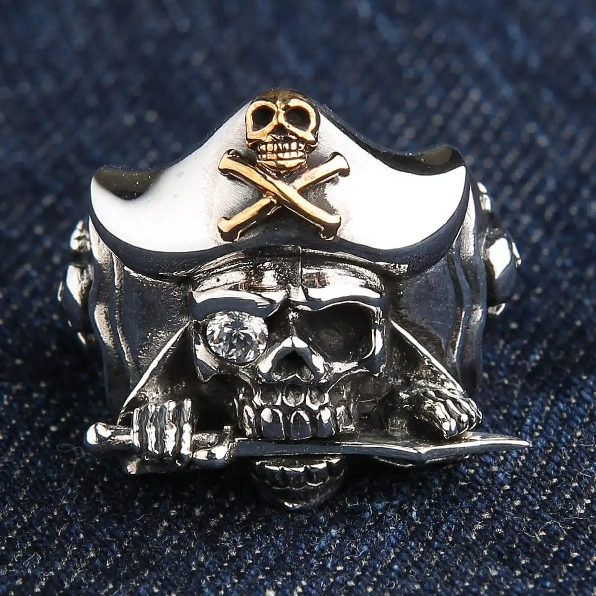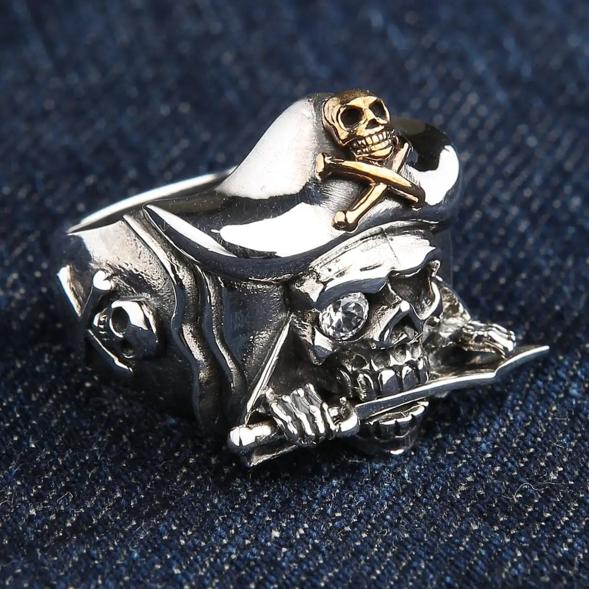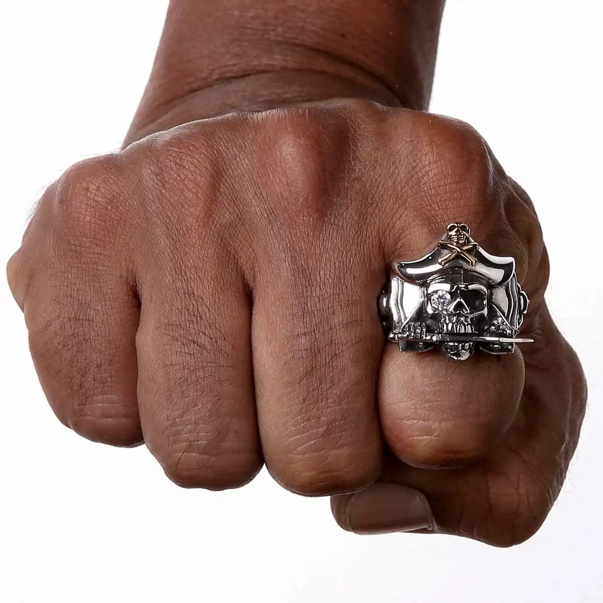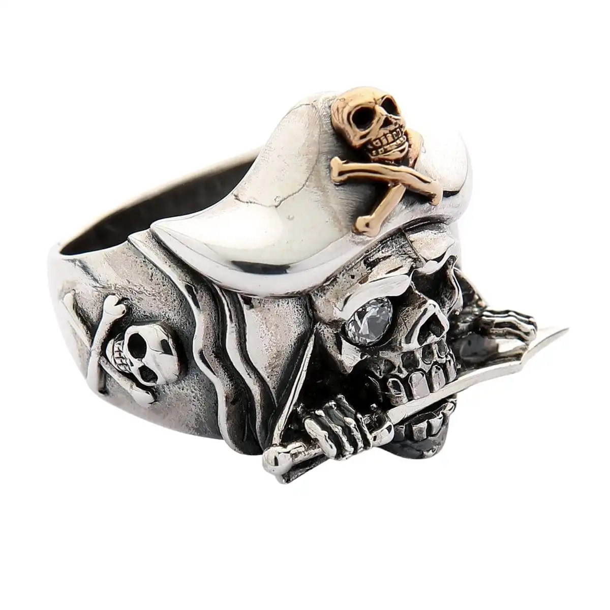 This Jack Sparrow ring stands out proudly with a mix of sterling silver and 14k yellow gold plating. Not one for the faint-hearted, it is an accessory that demands the confidence of any man.