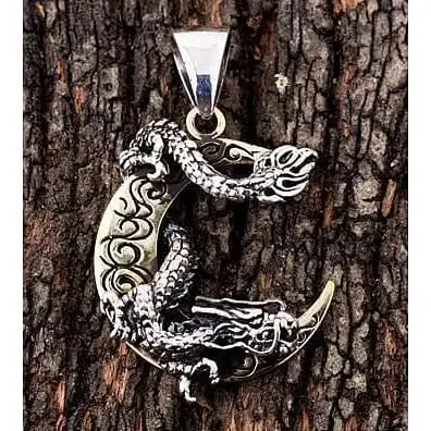 JAPANESE DRAGON MOON STERLING SILVER MENS PENDANT ~NEW