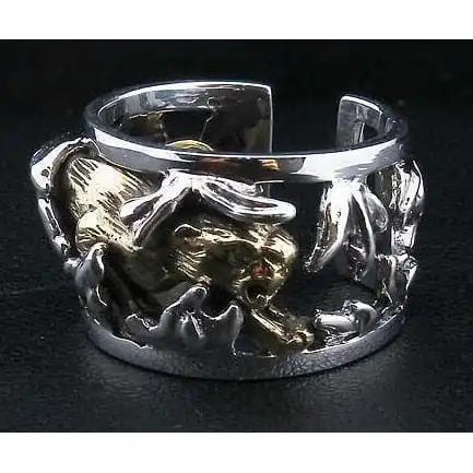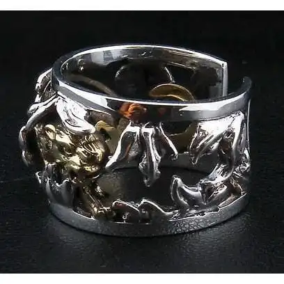 This solid silver band splits at the back, allowing it to be adjusted to fit your finger perfectly. With the simplified silhouette, it can be worn on its own or accompanied by similar rings. For the biker empowered by masculinity and inner strength, this accessory is a firm choice.