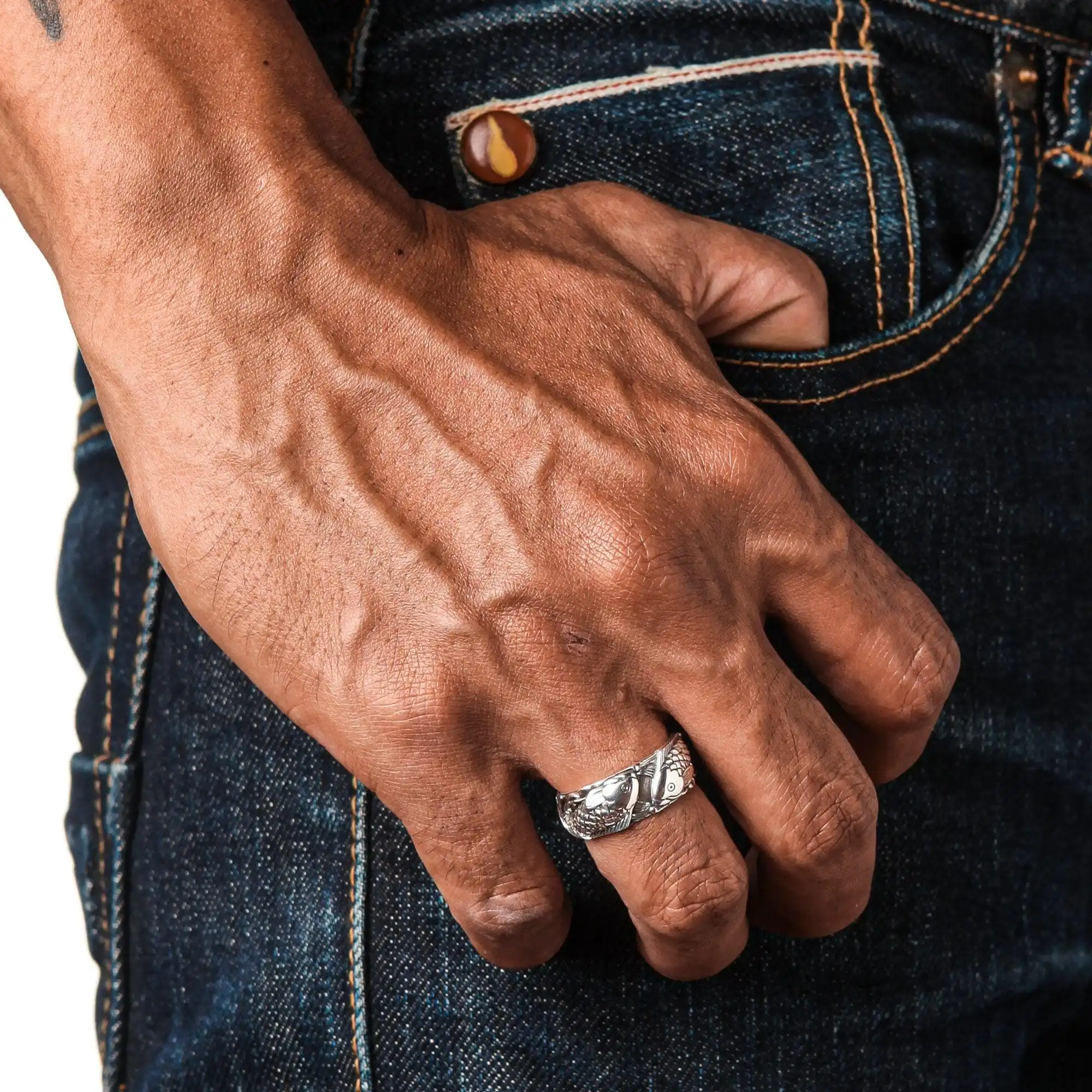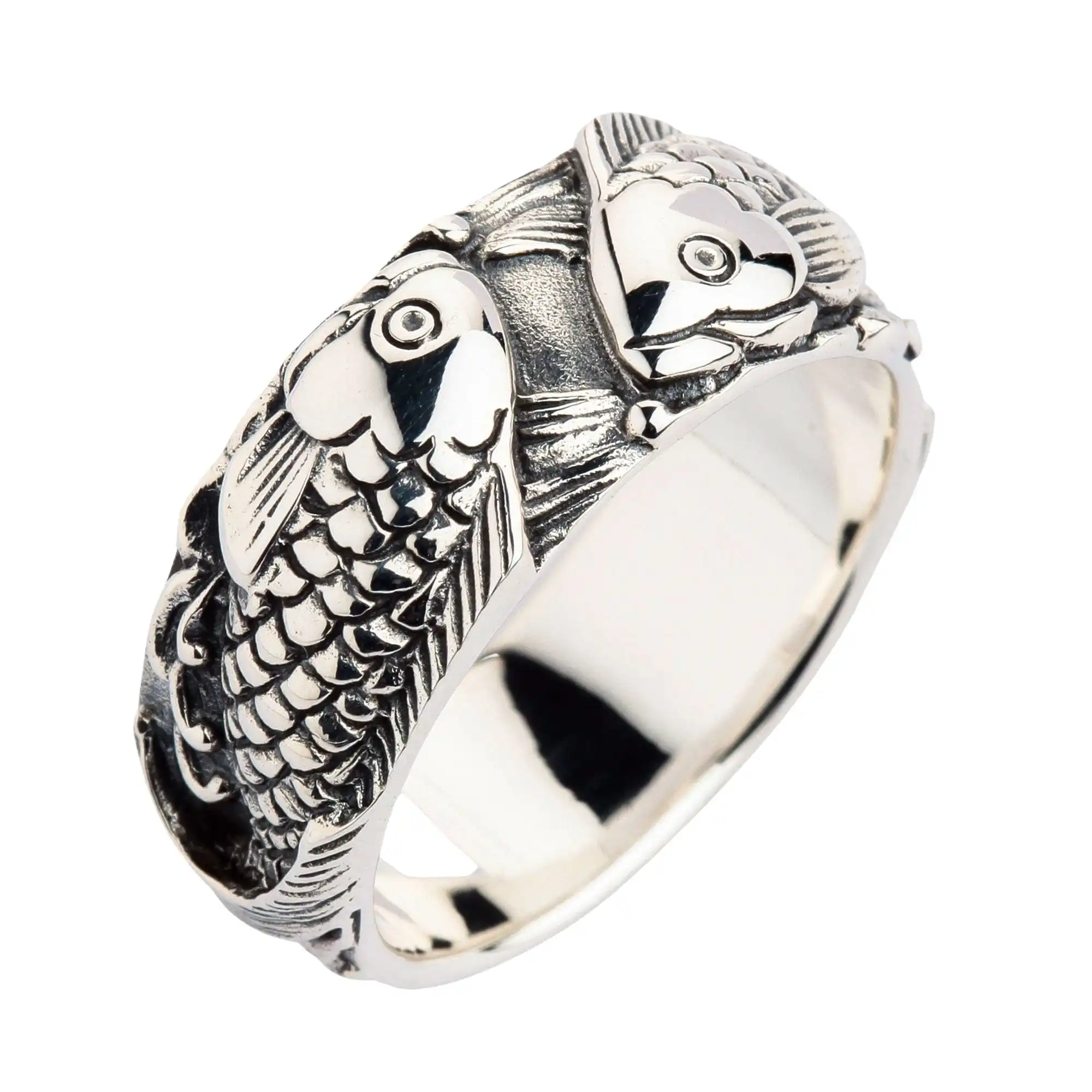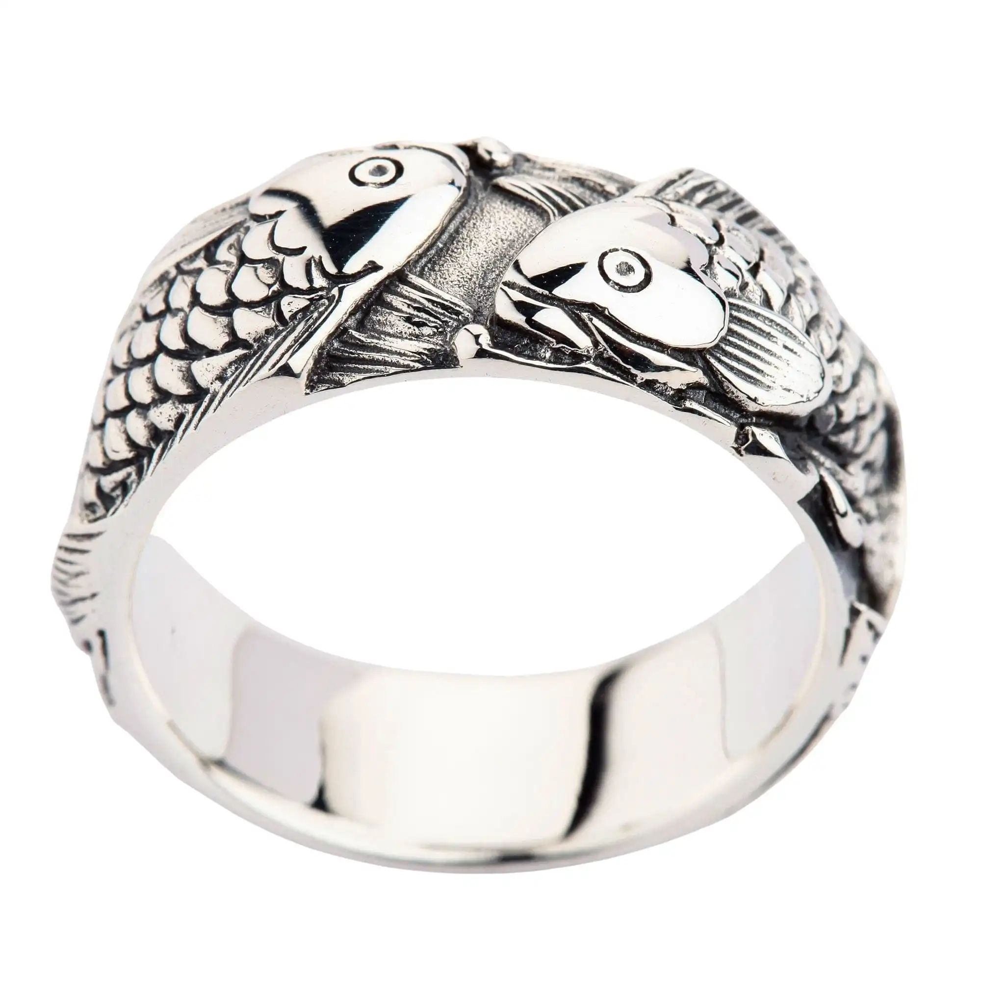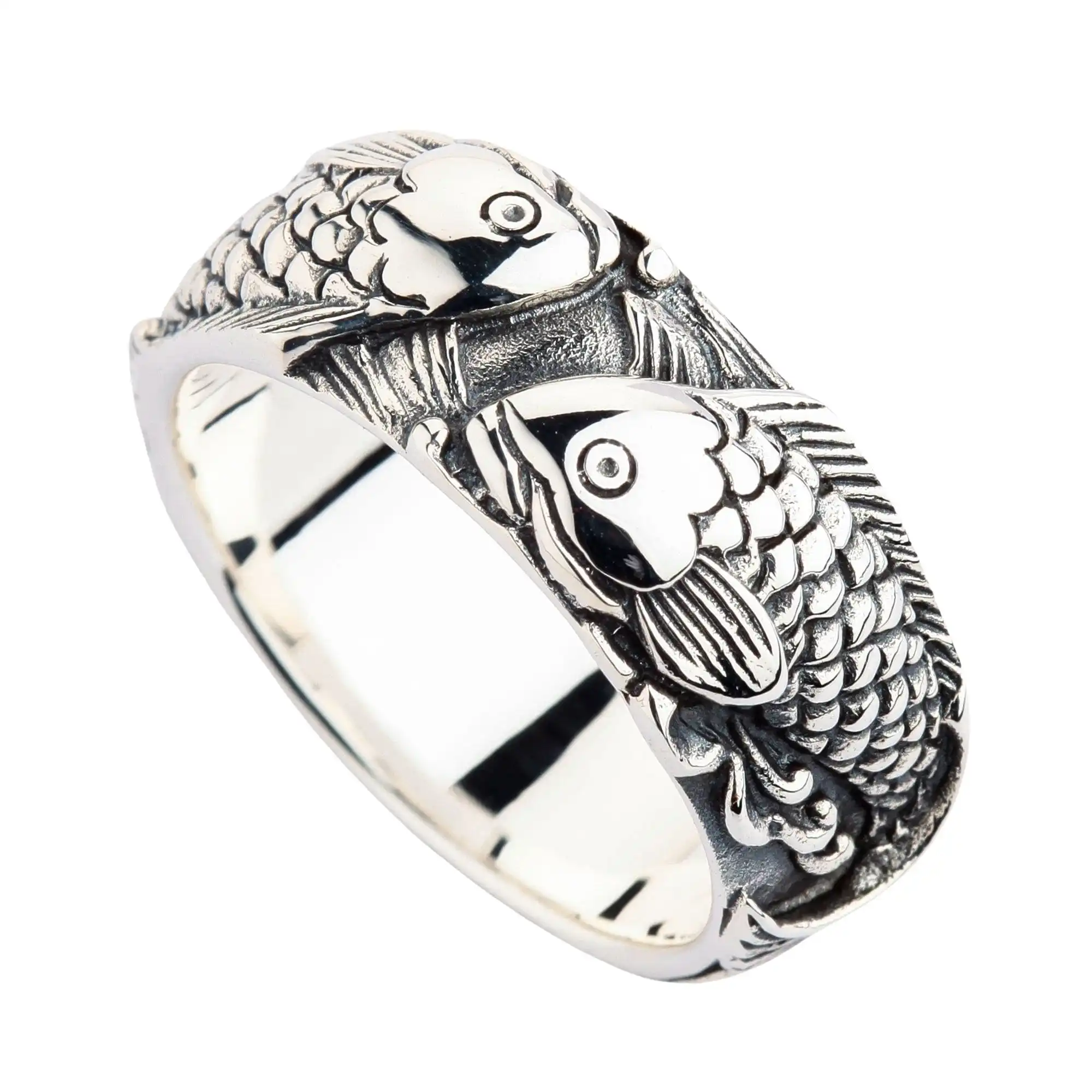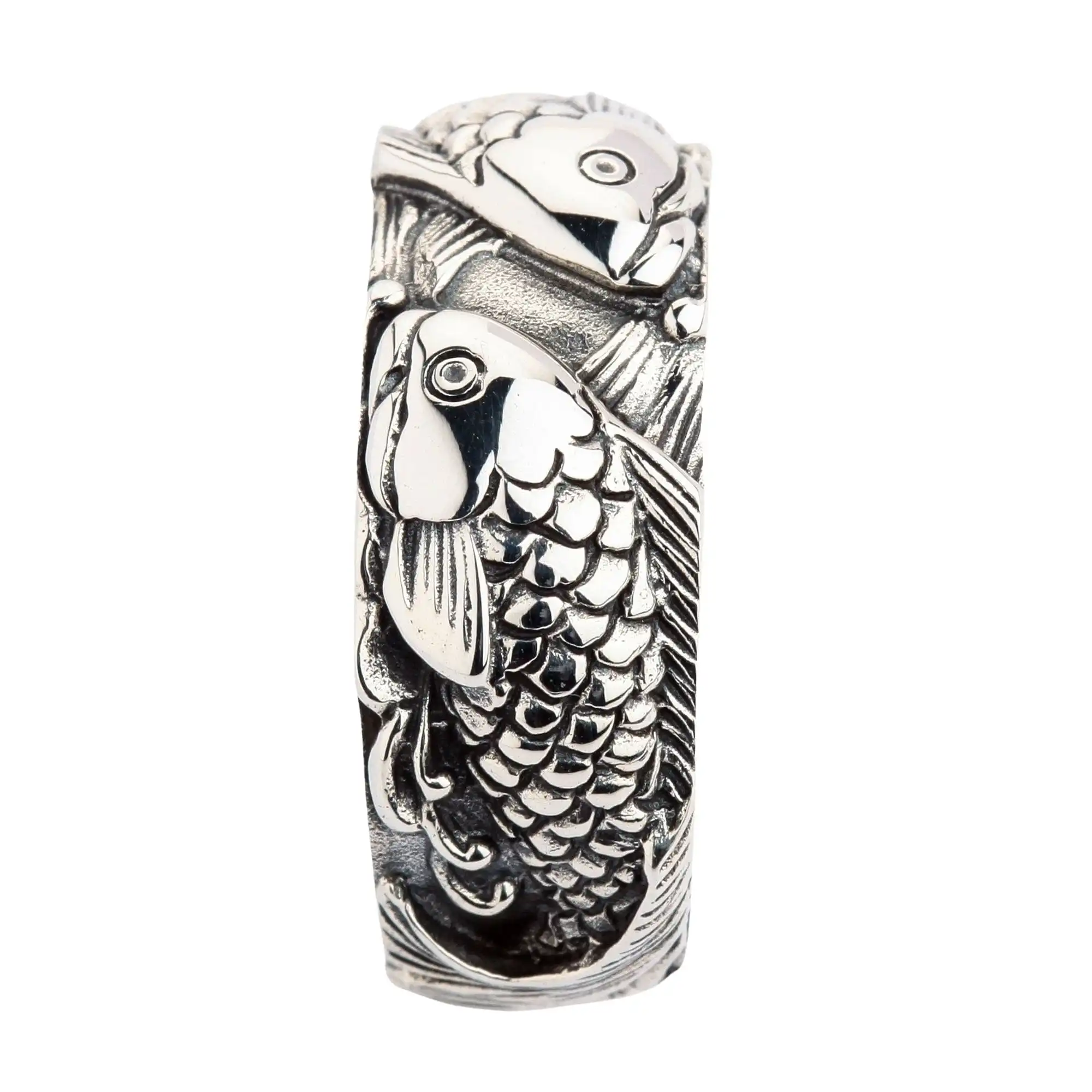 925 Sterling Silver Japanese Koi Fish Wedding Band Ring