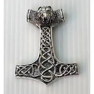 If you want to make a statement you would want to wear a bulky pendant such as this Thor’s Hammer Pendant. Made from 100% solid sterling silver, this pendant is one of the largest ones in our collection as it measures 40mm by 50mm. It weighs 15g as it is very solid. On the top part there is the lion and the necklace will be inserted through either side of it, making it look very fashionable. The lower part is the same as that of this mythological symbol, with the intertwining knots.