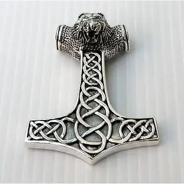 LION HEAD & KNOT DESIGN THOR’S HAMMER 925 STERLING SILVER MENS PENDANT ~NEW