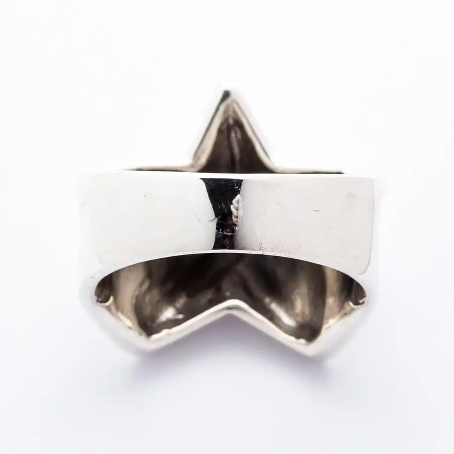 This solid, chunky design has been given a unique indented band to carry the star theme throughout the whole circle. It has been crafted from 100% genuine sterling silver and is complete with .925 trademark stamp on the inside of the band to prove authenticity. Reassuringly heavy and given a high-shine polish, this is a piece that is sure to stand out on your hand, reminding the world just how much of a star you are!