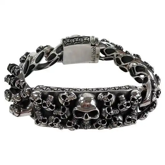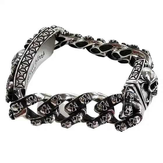 Comprised of the highest quality 100% sterling silver, and finely polished, our multi-skull bracelet is a heavy bracelet you can rely on to not just stand out but to stand the test of time as effortlessly as your favourite classic rock band.