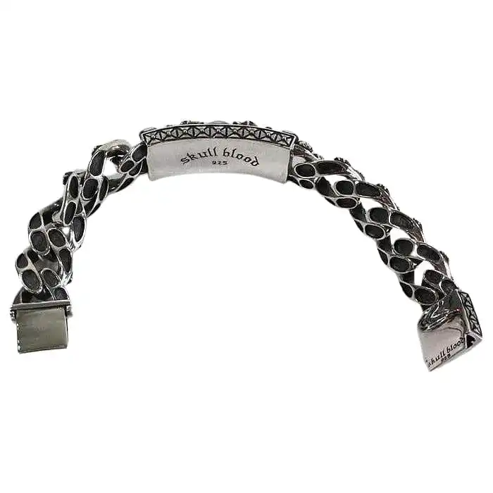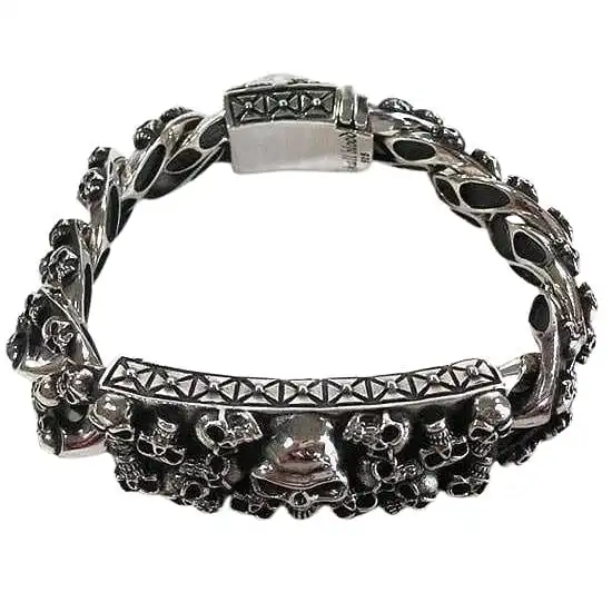 Heavy 925 Sterling Silver Rocker Multi Skull Biker Bracelet