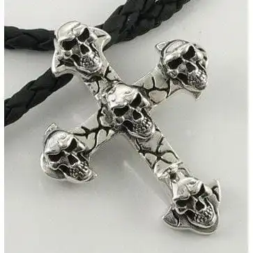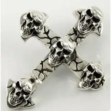 Sterling Silver Multi Skull Gothic Cross Biker Men’s Pendant ~New