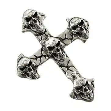 Everybody knows that the Cross is a Christian symbol. At the same time, its image is not expropriated by the church, it belongs to everybody. This unique pendant allows you to flaunt the familiar image but with a difference. The end of each bar, as well as their intersection, carries a Grim Reapper-esque skull. Its evil grin and the frowning look will send shivers down your spine. Just put it on a massive silver chain and let it rest on your chest, and not a single person will be able to avert their eyes from it.The pendant is hand-crafted of 100% sterling silver, much-respected in Gothic jewelry. We molded it by hand to guarantee overwhelming appearance, attention to detail, and a touch of individuality.