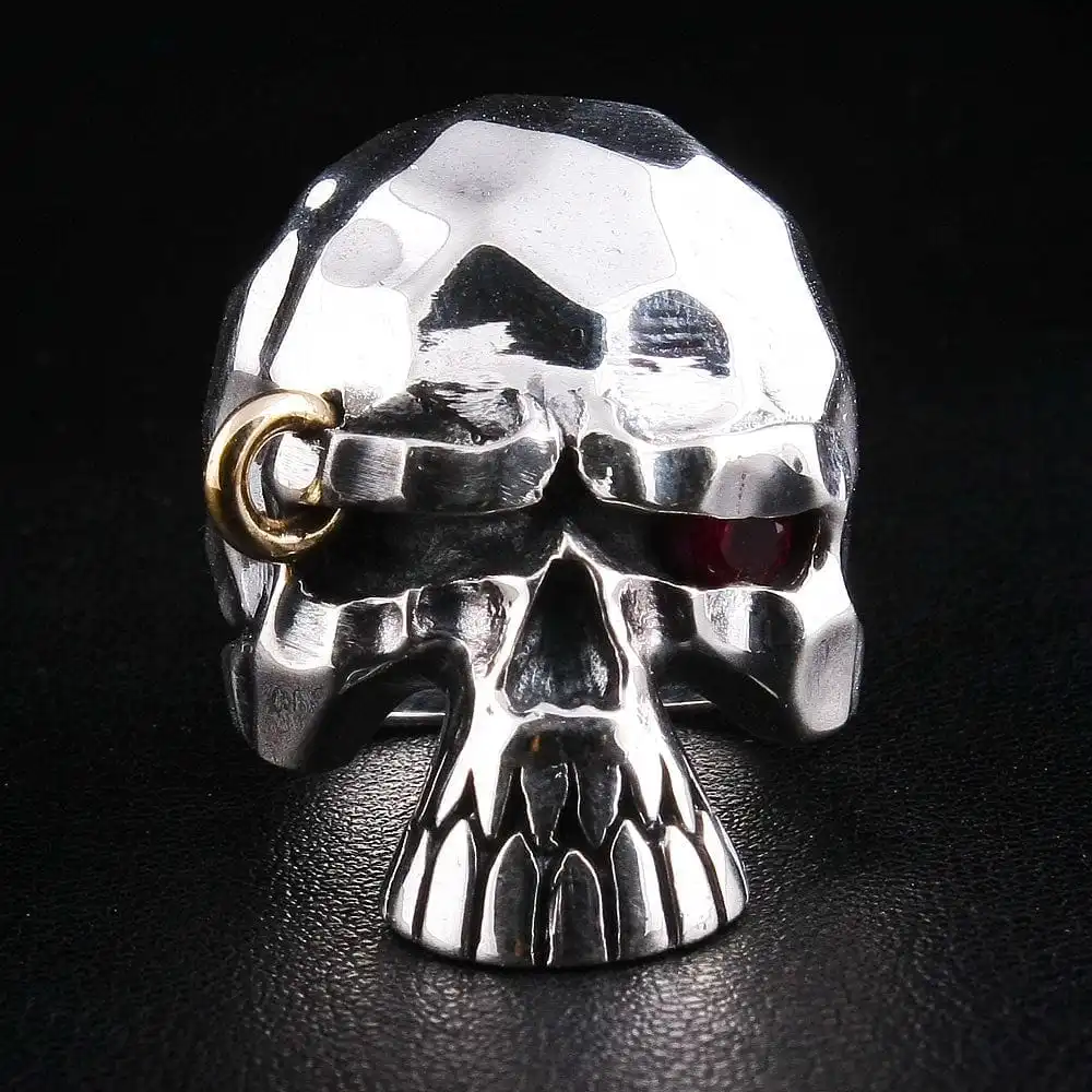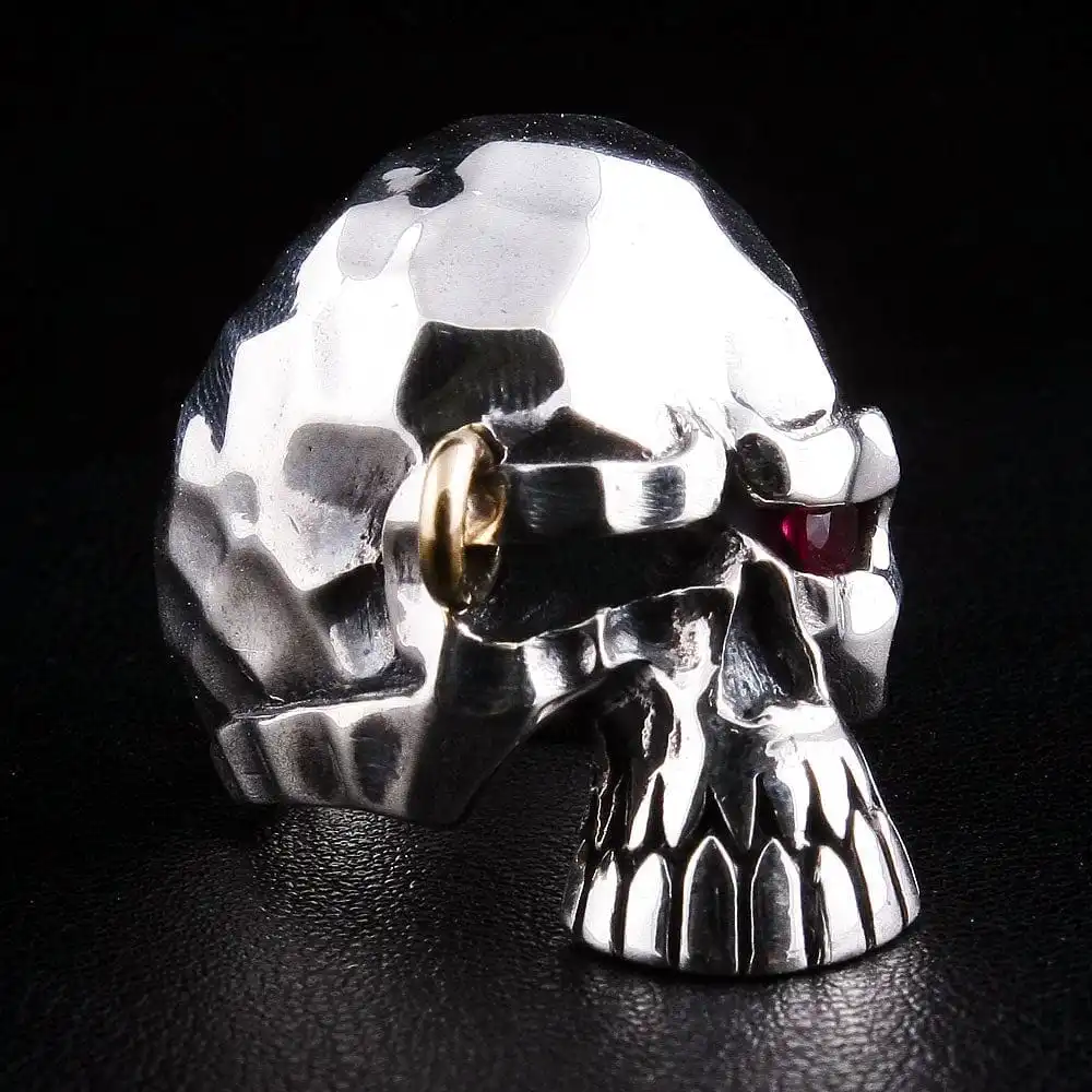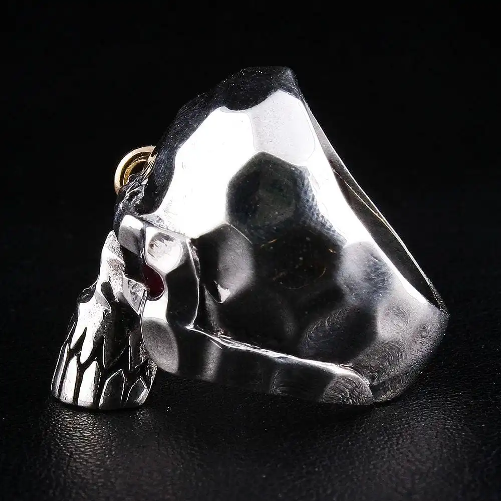 925 Sterling Silver Red Eye Punk Skull Biker Ring