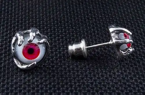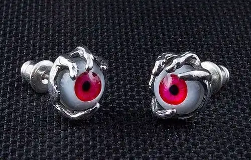 These monster eyeball earrings are easily, if you’ll excuse the pun, one of the most eye-catching pairs of earrings available. Featuring two monster hands clasped around a bulging blazingly red eyeball made from high quality stone glasstic material, these are serious statement earrings sure to get some looks!