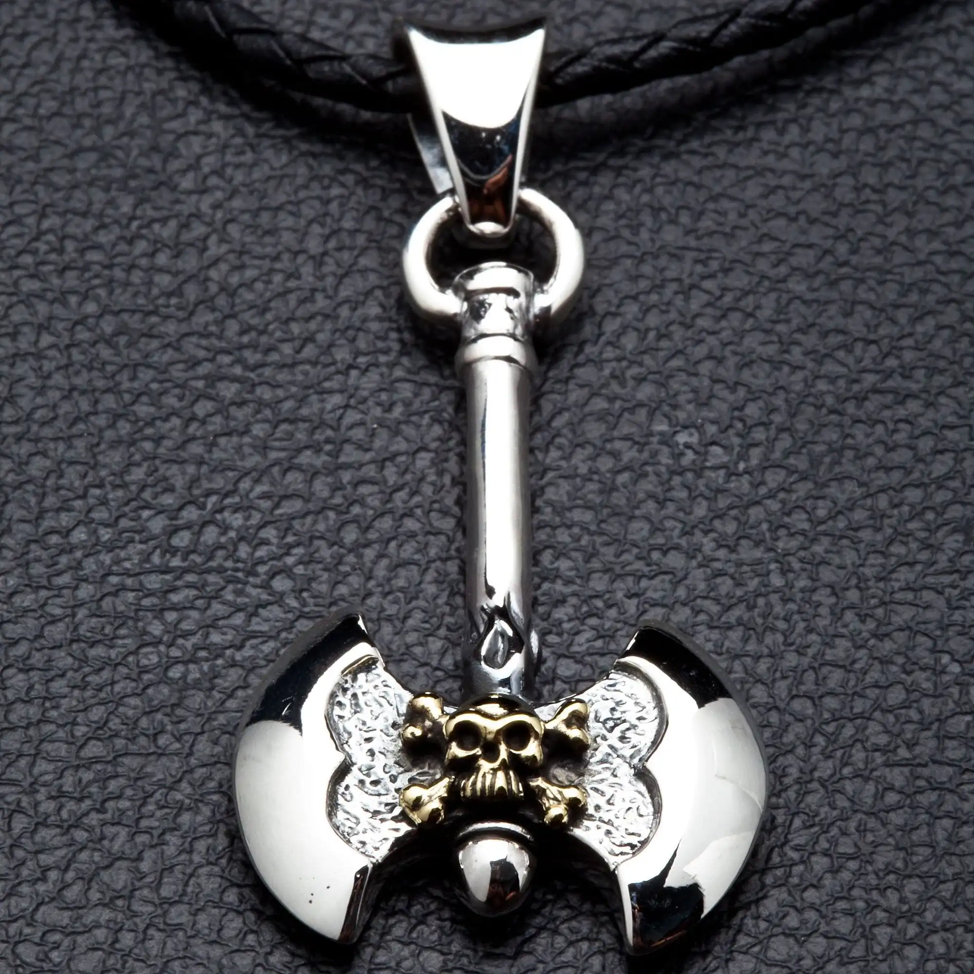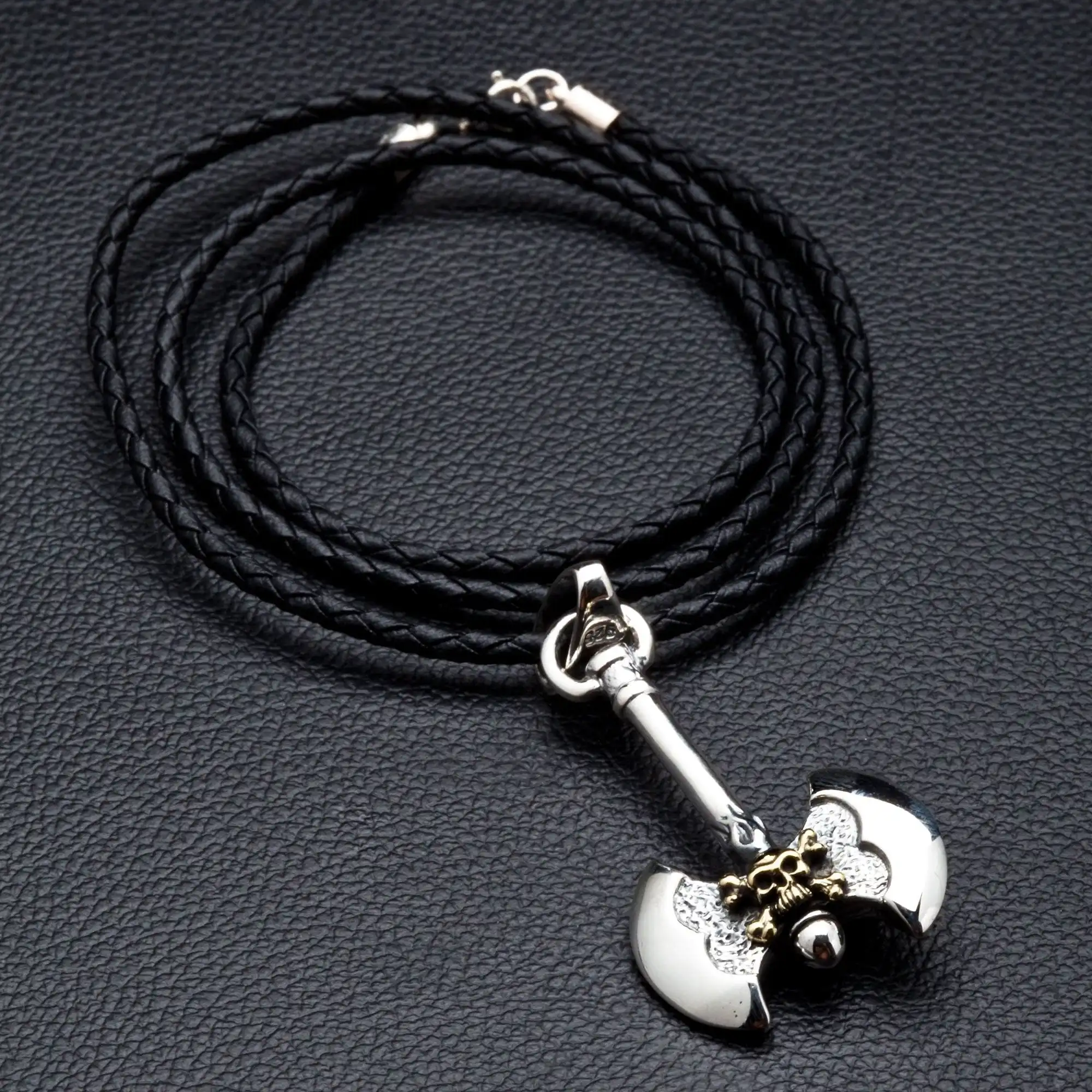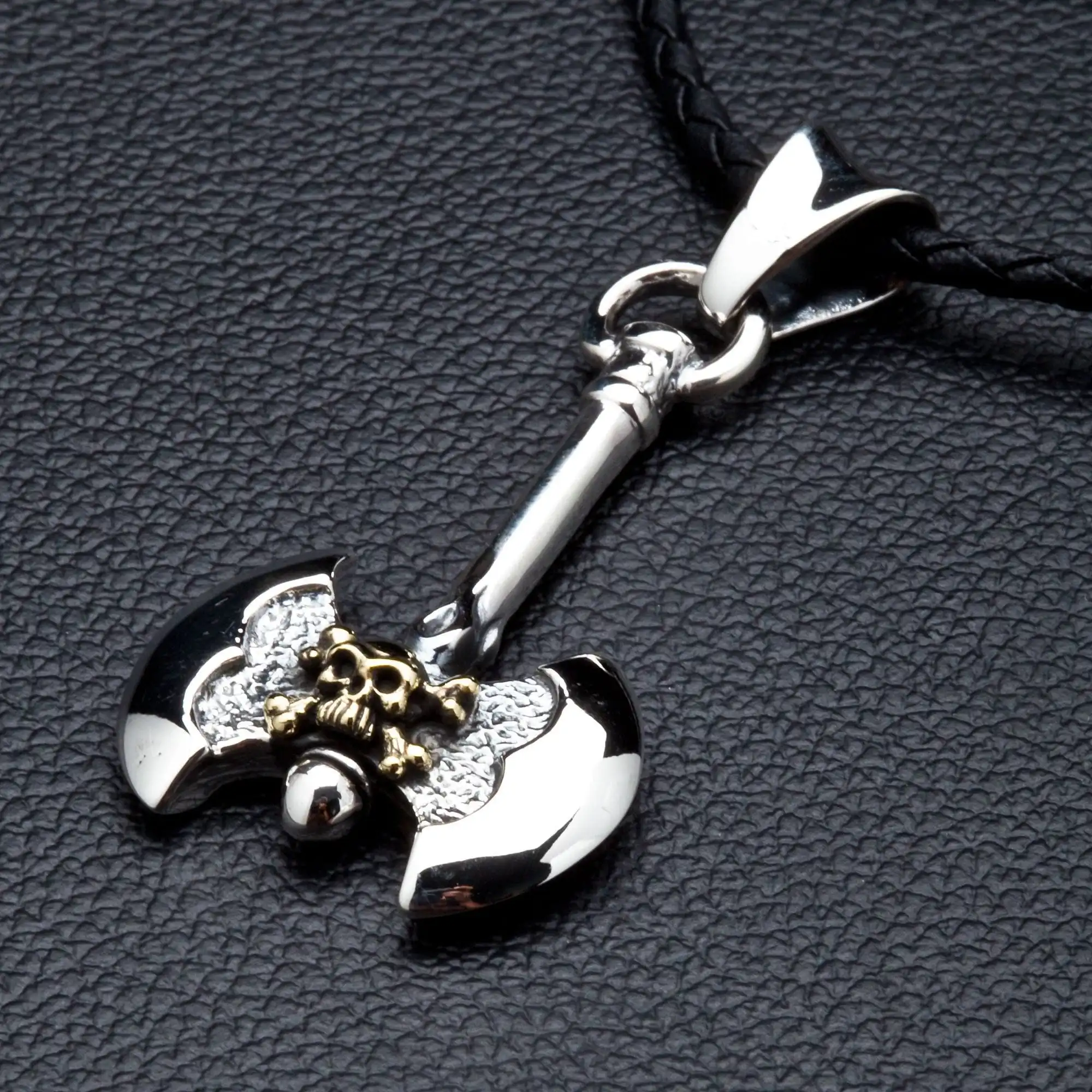 Sterling Silver Gothic Skull Axe Men’s Pendant Necklaces