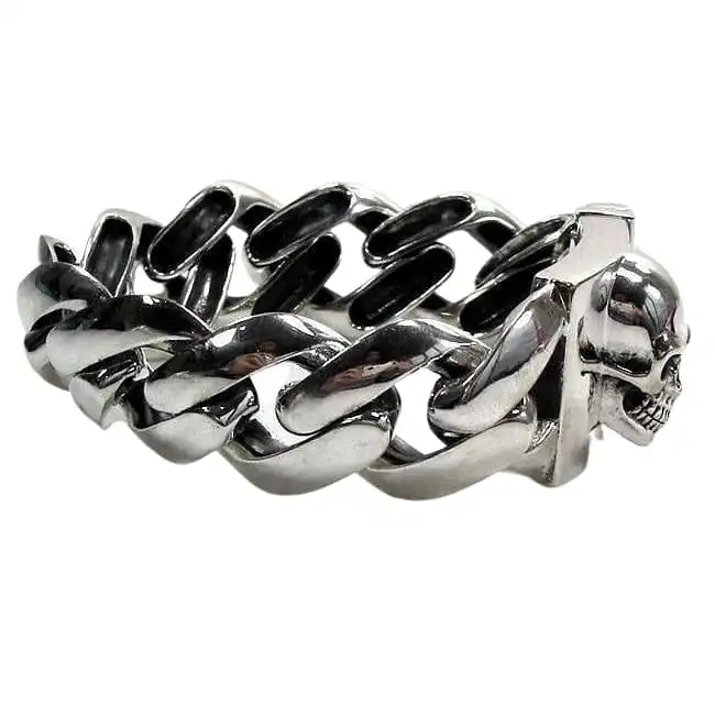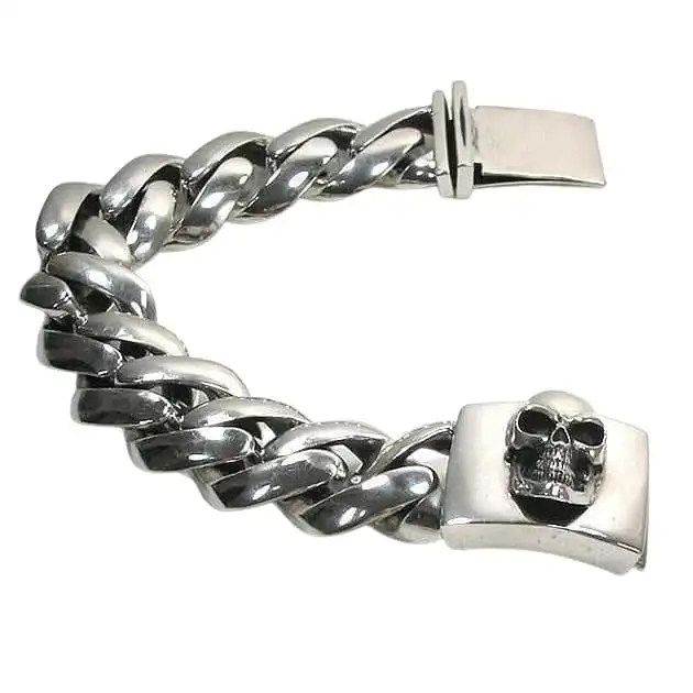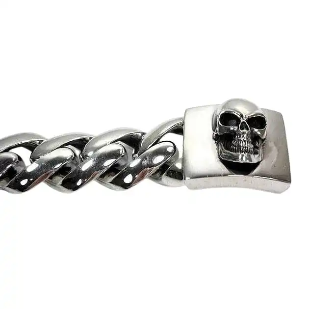 Heavy 925 Sterling Silver Skull Cuban Men’s Bracelet