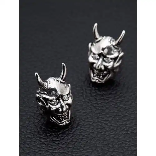 Complete with raised devil horns and black oxidised accents, to create the intricately carved expression on the face, these devil stud earrings are the perfect way to finish an authentic biker style. Simply pair them with a ring or two and your trusty bike leathers and your look is completed in style and ready to go.