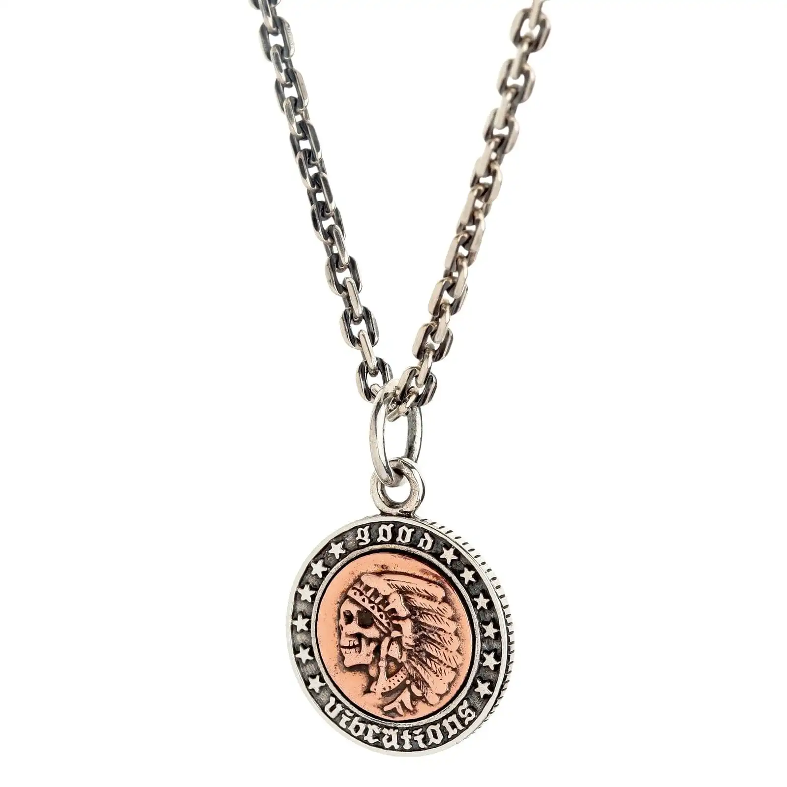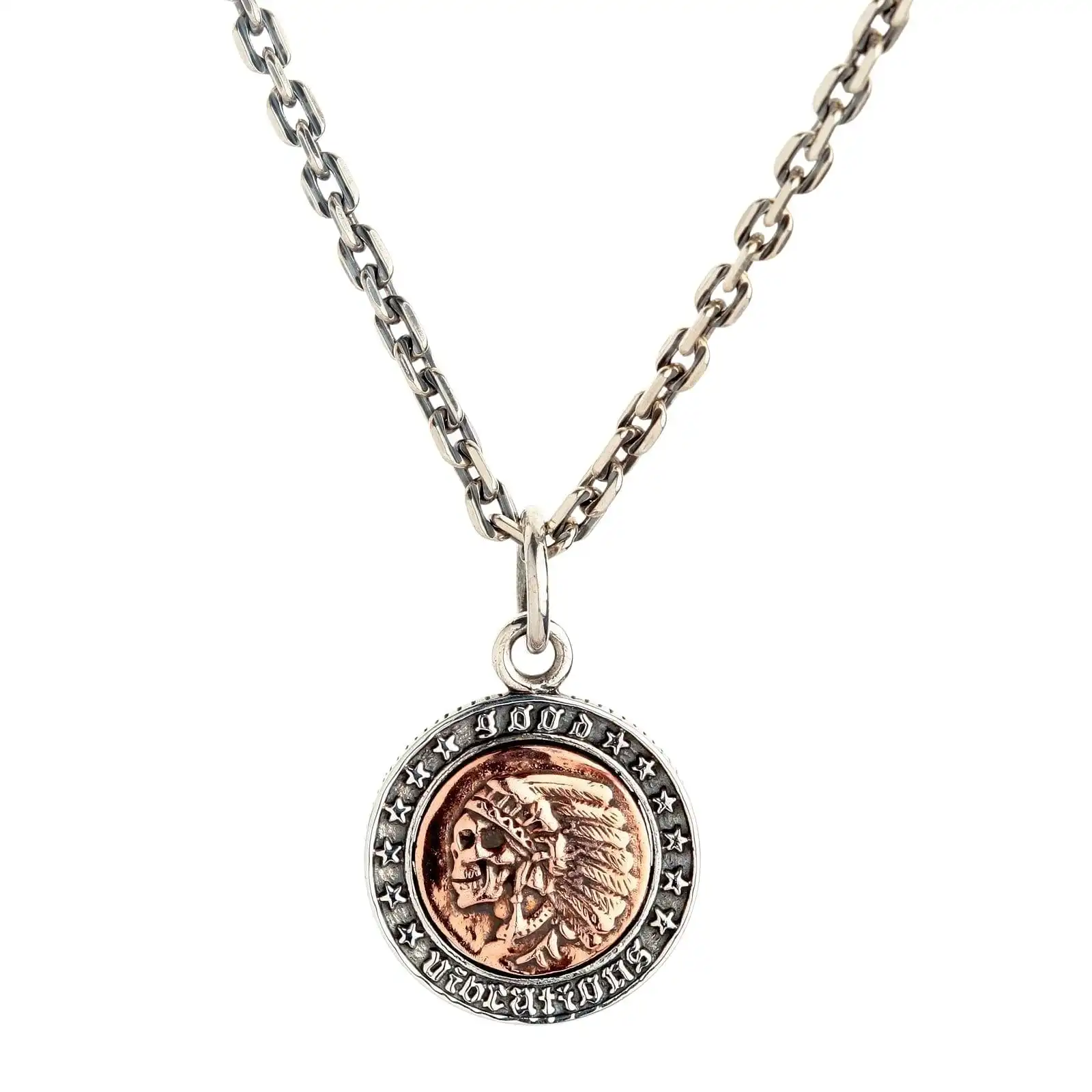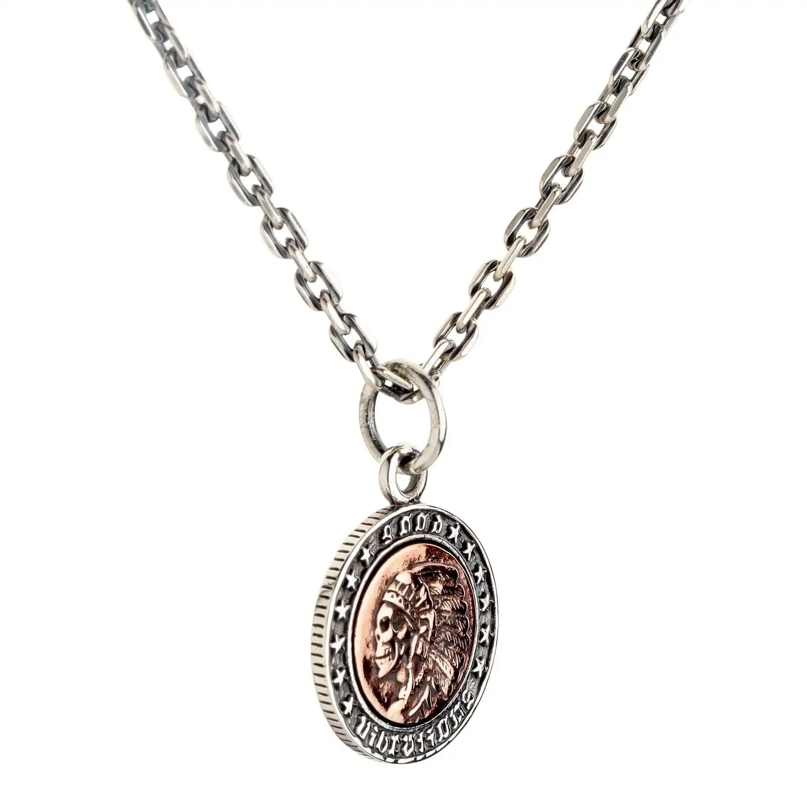 Sterling Silver Skull Indian Liberty Coin Pendant