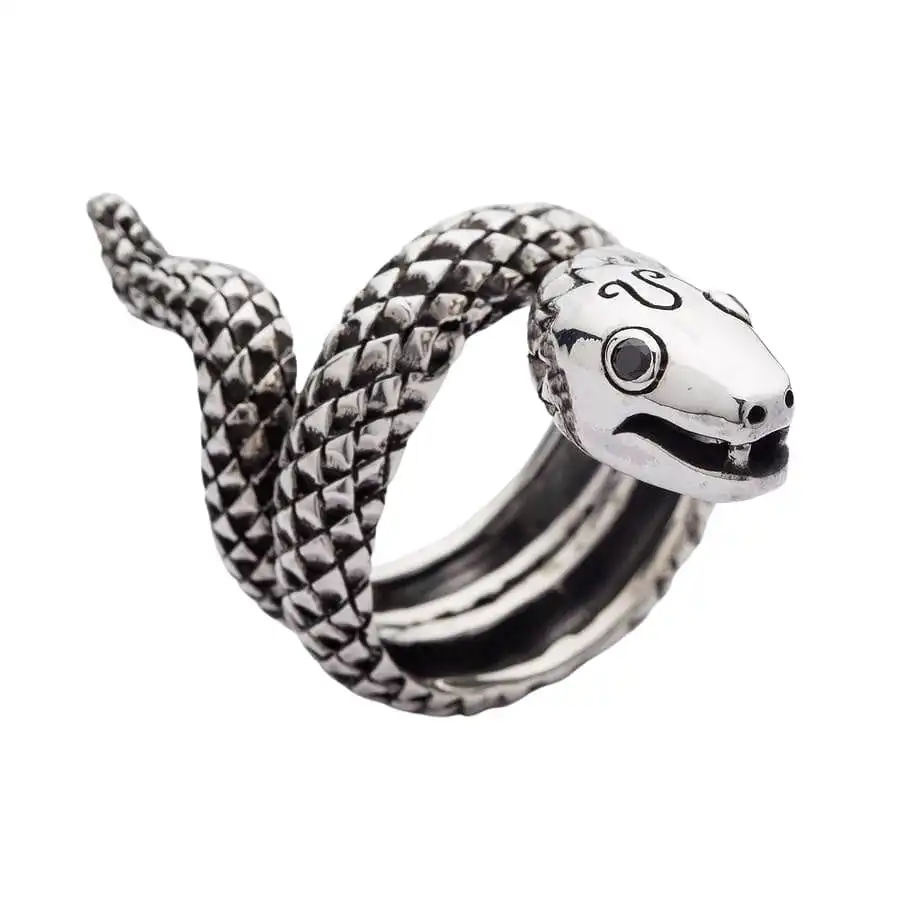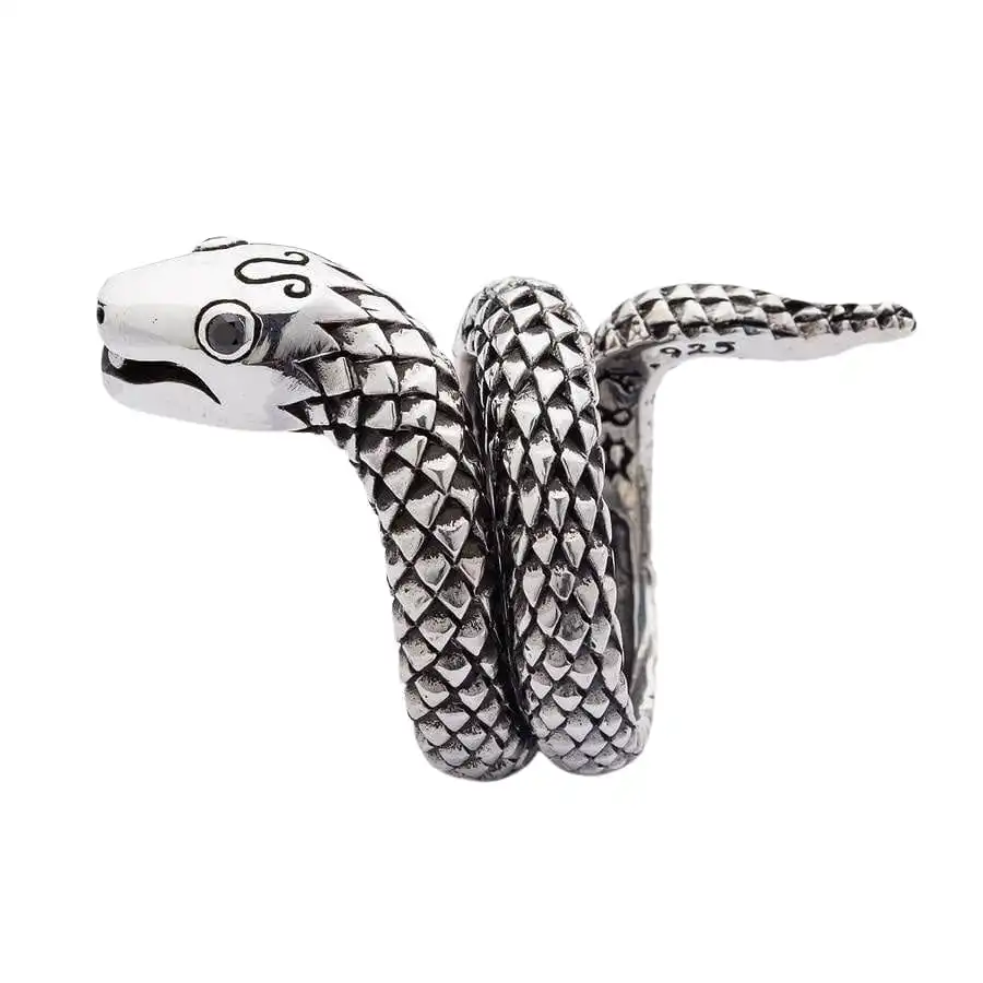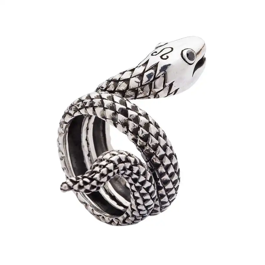 Snake jewelry has been around for over three thousand years. The snake is the personification of power and pure energy. It is a mighty talisman that many civilizations of the ancient world believed in, including Egyptian, Indian, Ancient Roman, and Ancient Greek.Our Snake Sterling Silver Ring carries dualistic symbolism. Since the snake sheds old skin from time to time, it has been considered a symbol of death and rebirth. The snake is associated with life and, at the same time, with death. It stands for the forces of spiritual destruction that make a person give in to the temptation of power and wealth. The snake is a multiаfaceted and universal symbol. It can personify the solar and lunar principles alike, male and female nature, good and evil, wisdom and blind passion, healing and poison, change and transformation.