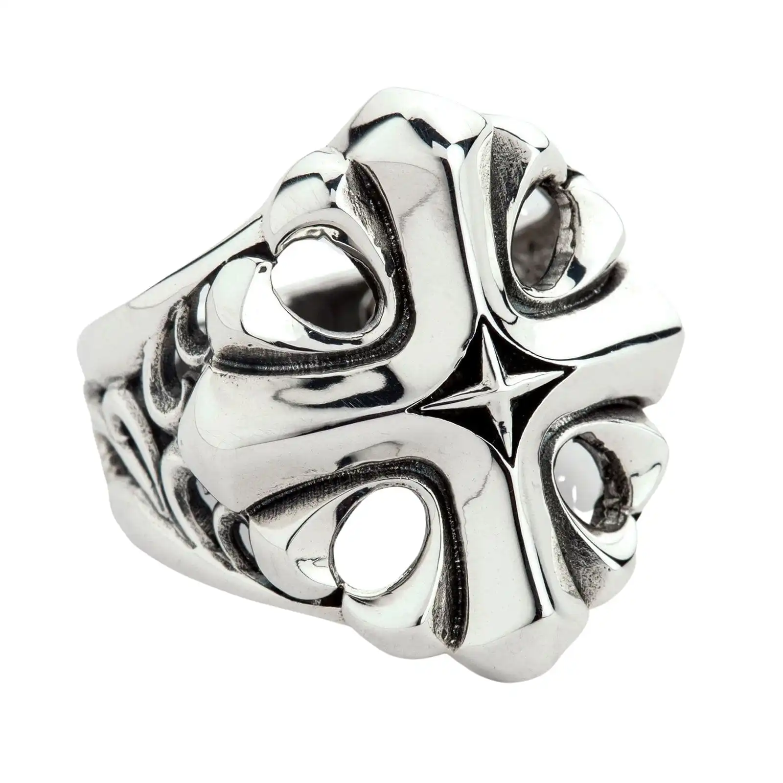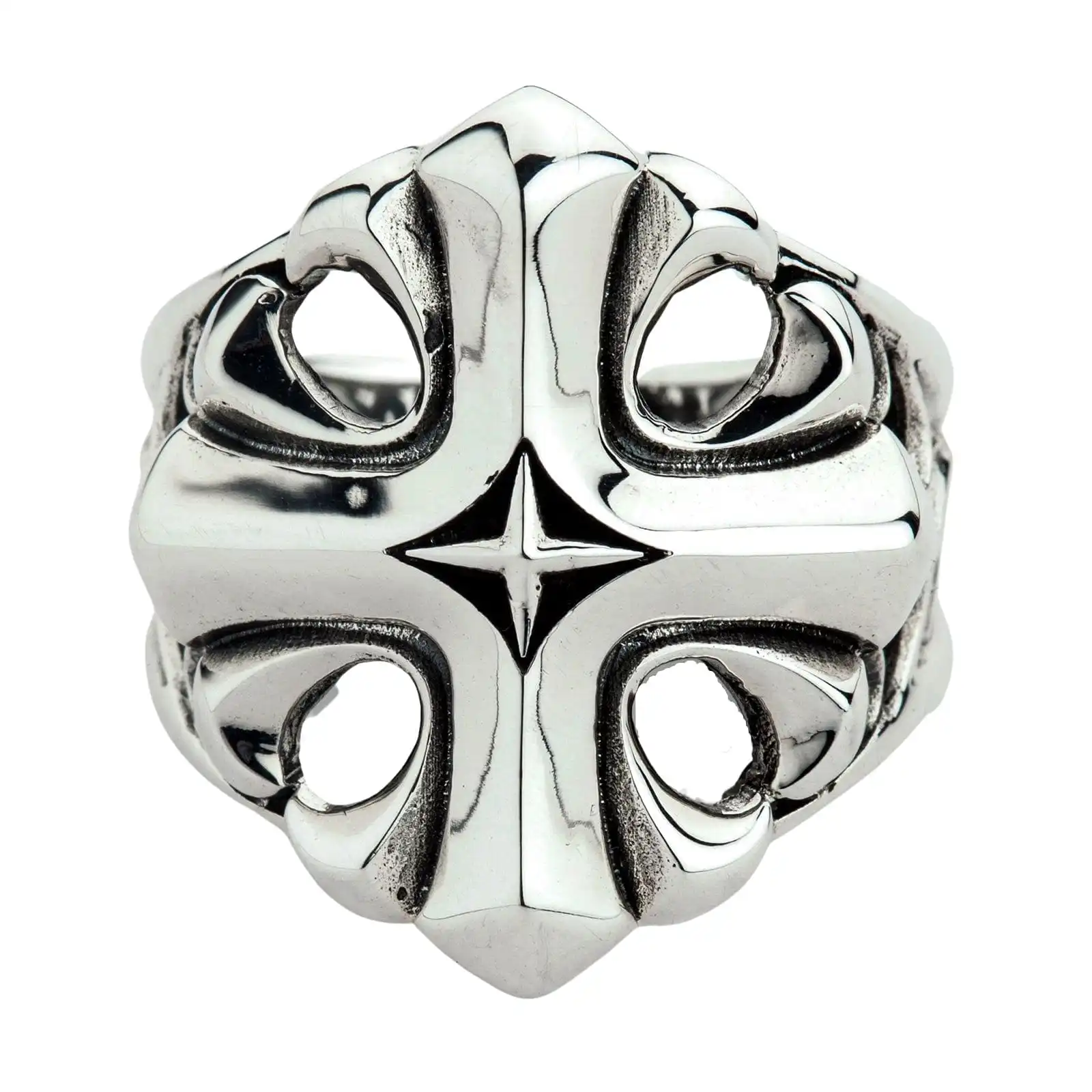 Royal allure is affordable to everyone with Sterling Silver Star Cross Ring from Bikerringshop. With the symbols of power, regal grace, and premium materials, this ring is bound to separate you from the crowd.
