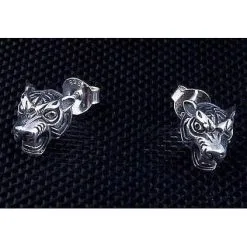 TIGER HEAD STERLING SILVER MEN’S STUD EARRINGS ~NEW