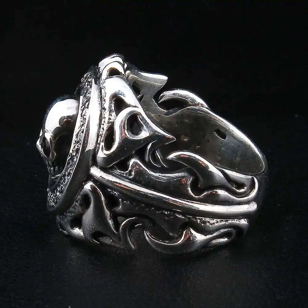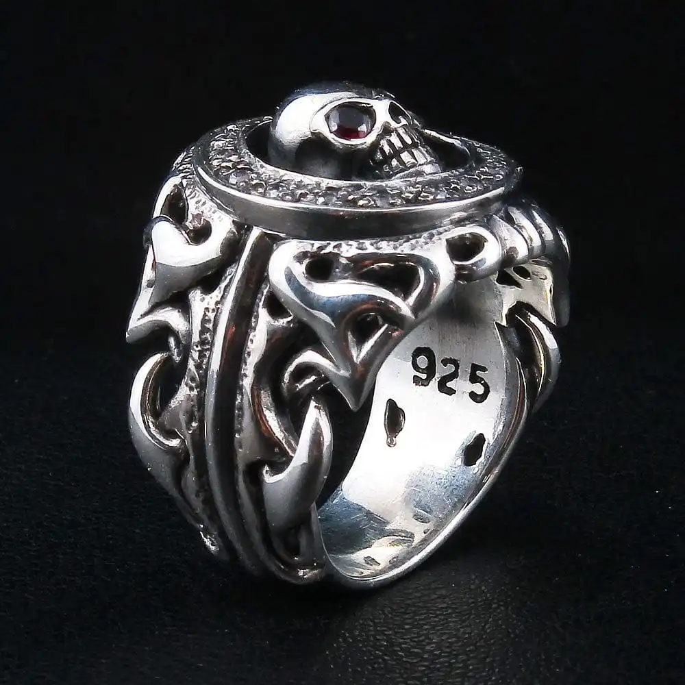 Sterling Silver Tribal Red Garnet Skull Gothic Ring