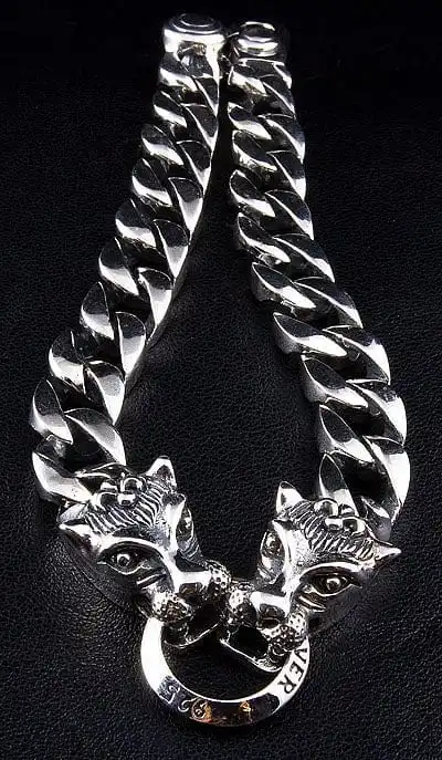 These two wolves appear to be fighting over the centre loop, in the process, forming a creative bracelet. The wolves have been decorated with the smallest details, making them look like fierce wolves.