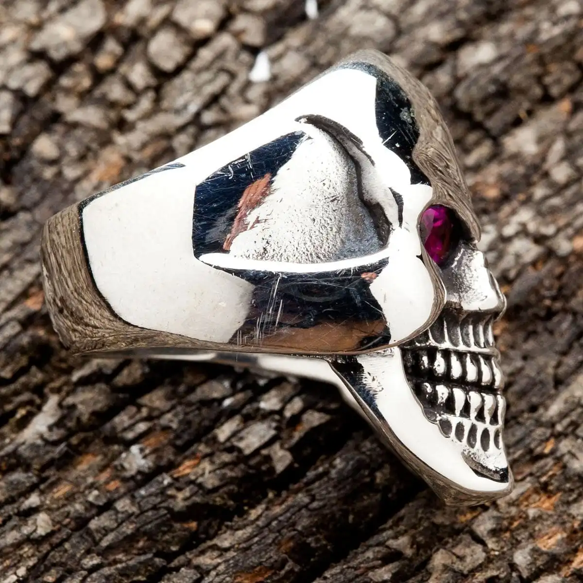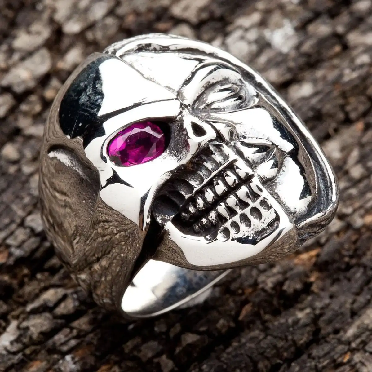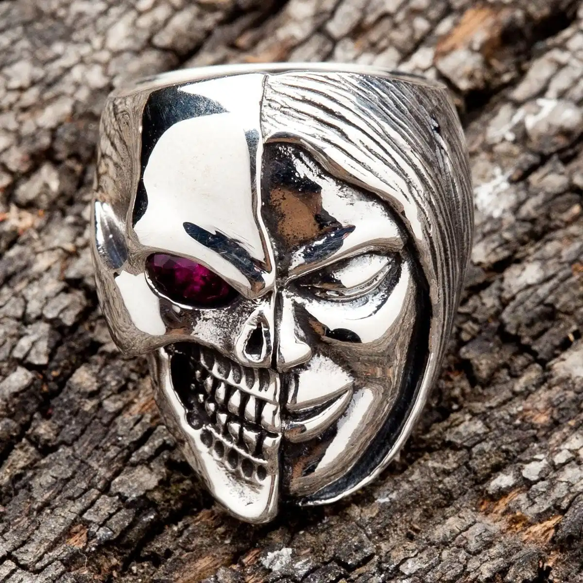 Sterling Silver Red Eyes Two Face Skull Devil Ring