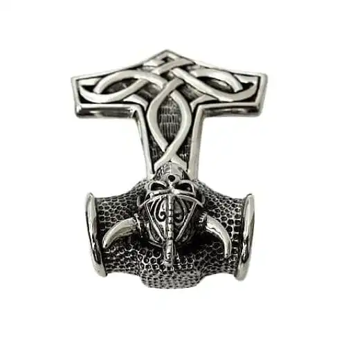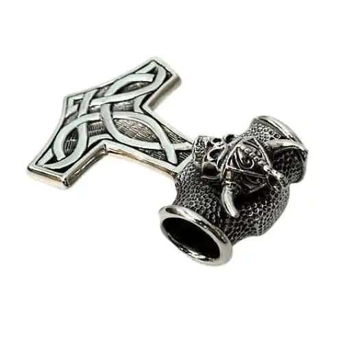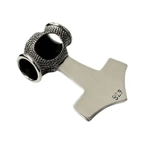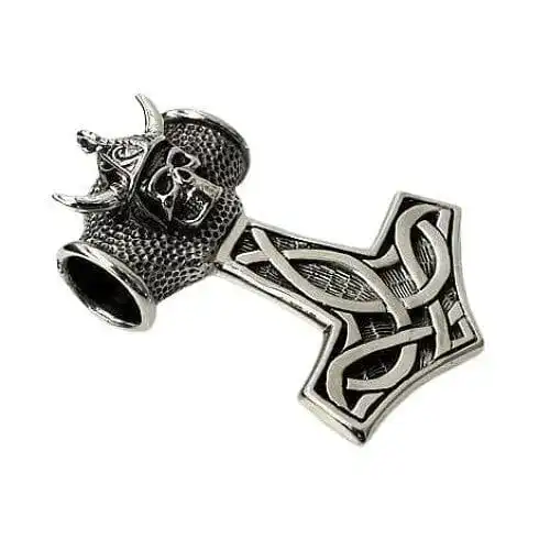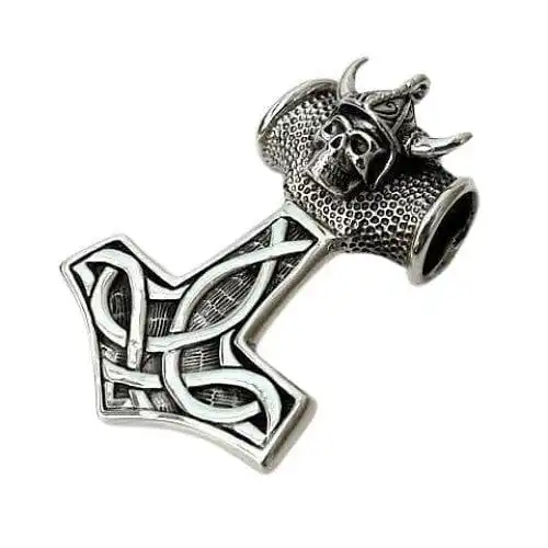 The hammer design was, of course, based upon the Norse God’s hammer. Thor was known in some tales as a demi-god, others he has been depicted as a Viking. This solid sterling silver hammer combines both of this elements.The detailing and the shape will remind you of Norse mythology, whilst the skull and commonly misinterpreted Viking helmet to represent the fierce Vikings.