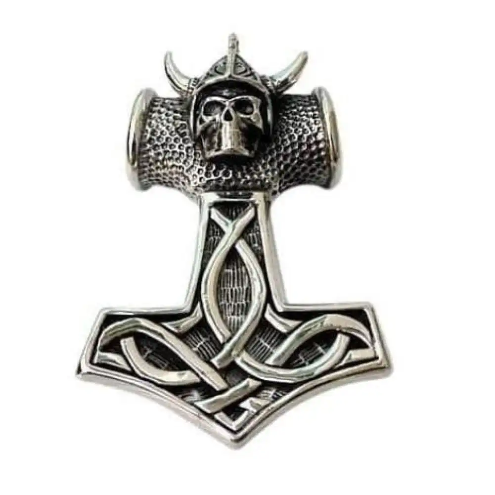 Heavy Sterling Silver Viking Skull Head Thor’s Hammer Pendant