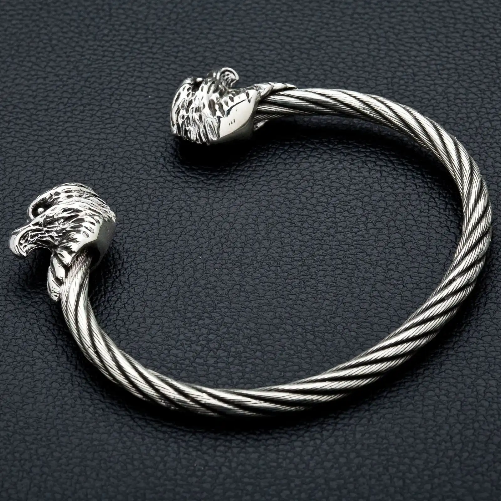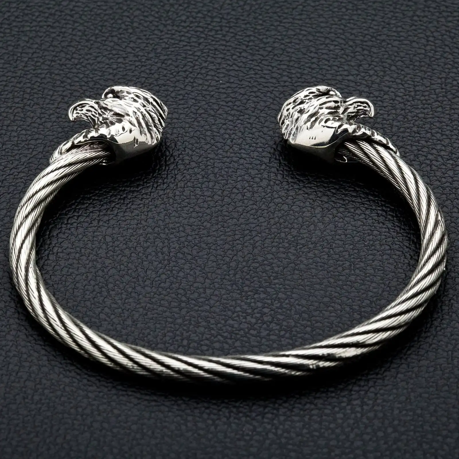 The eagles are connected with a thick twisted wire, adjustable to nicely curl around your wrist. Despite being pretty simple, this design is both durable and bold. As always, we sculptured this piece using sterling silver, the best material for men’s jewelry. It is sturdy, beautiful, and noble, just what you need to stand out. To showcase all its features, our dexterous silversmiths made every piece individually by hand. You deserve having something awesome and unique such as this bangle, so what are you waiting for?