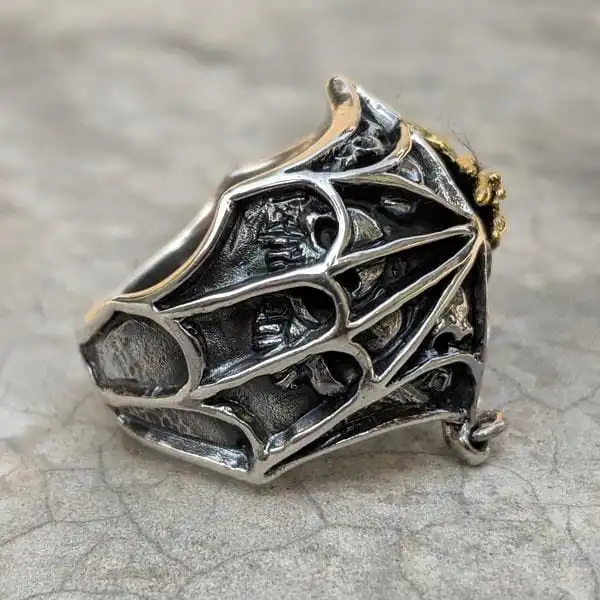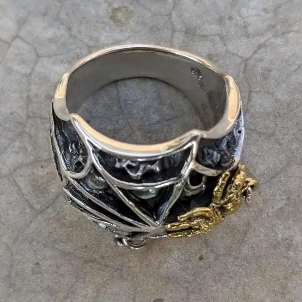 Sterling Silver 14K Yellow Gold Gothic Spider Ring ~New