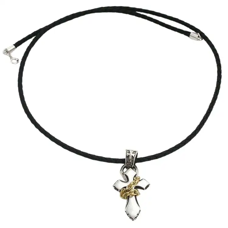 Leather Necklace Length: 20” InchesNow you can cross statement style off your to-do list in one swoop with this all-in-one gold chained cross sterling silver mens pendant and necklace.