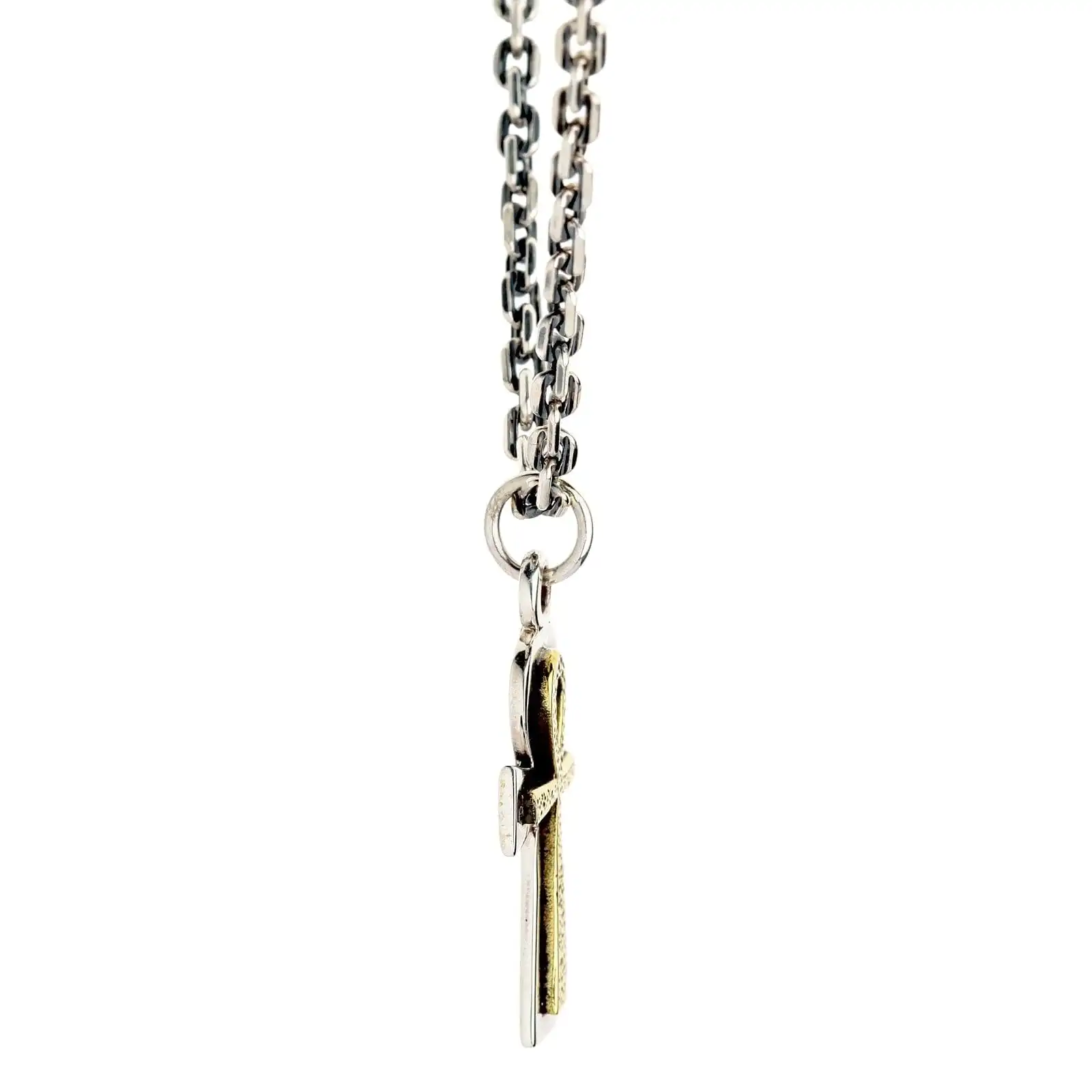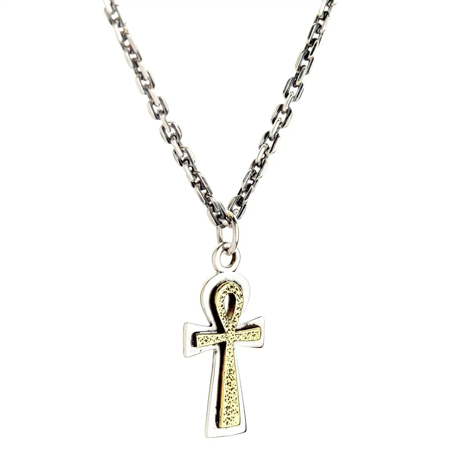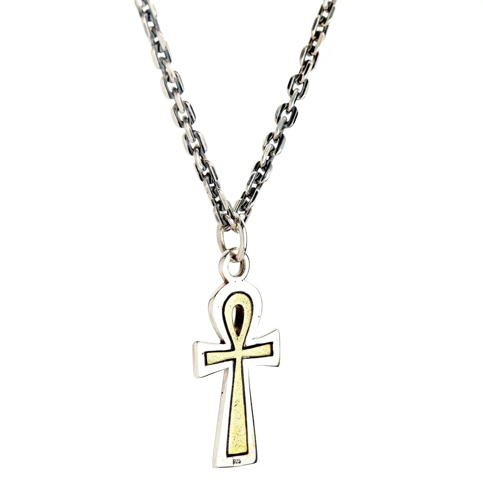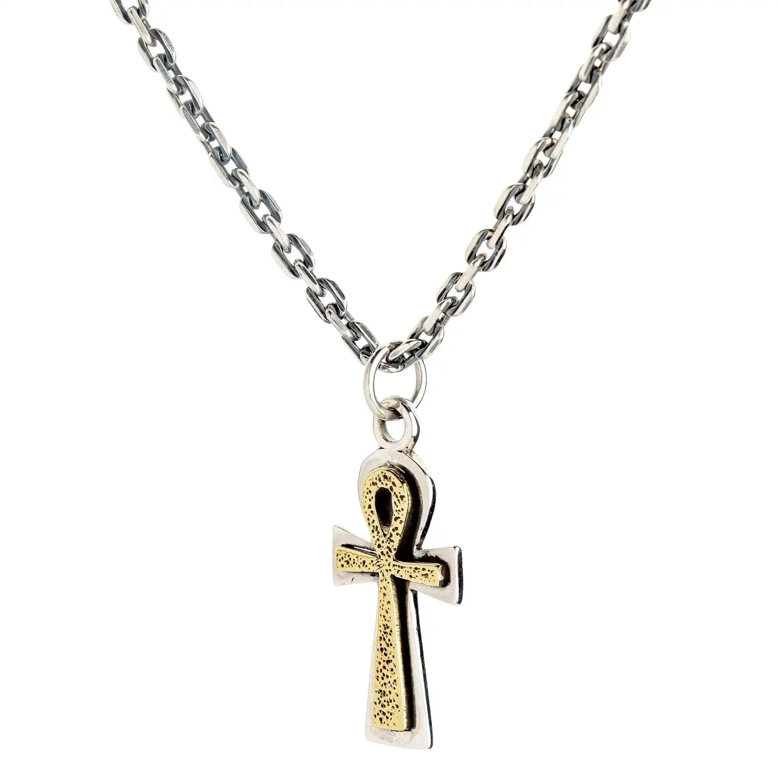 Twotone Gold Brass & Sterling Silver Ankh Pendant Necklace