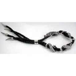 Bikerringshop Genuine Leather Silver Dragon Mens Bracelet