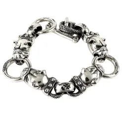 Bikerringshop Silver Lion Head Mens Chain Bracelets