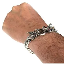 Bikerringshop Red Eyes Sterling Silver Dragon Bracelet