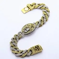 Bikerringshop Sterling Silver Dragon Link Mens Bracelet