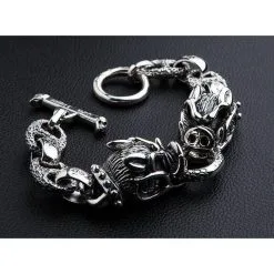 Bikerringshop Sterling Silver Dragon Mens Bracelet