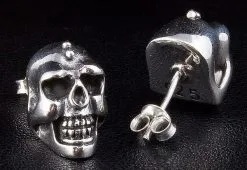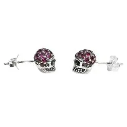 Bikerringshop 925 Sterling Silver Ruby Skull Earrings