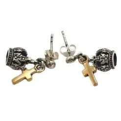 Bikerringshop 925 Sterling Silver Biker Cross Crown Earrings
