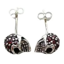 Bikerringshop 925 Sterling Silver Garnet Skull Earring