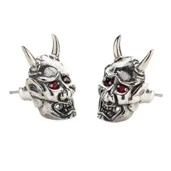 Bikerringshop Red Eyes Japanese Skull Oni Mask Earrings