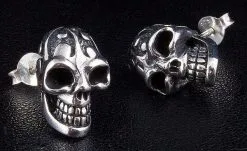 Bikerringshop Sterling Silver Skull Bone Studs Earrings