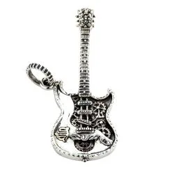 Bikerringshop Sterling Silver Rocker Guitar Pendant Necklace