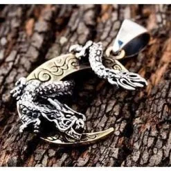 Bikerringshop Sterling Silver Japanese Dragon Moon Pendants
