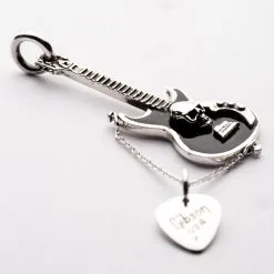 Bikerringshop Sterling Silver Guitar And Pick Rocker Pendant