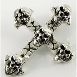 Bikerringshop Sterling Silver Multi Skull Gothic Cross Biker Men’s Pendant