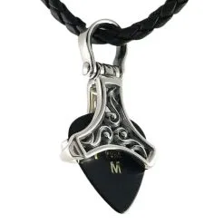 Bikerringshop Sterling Silver Tribal Carved Guitar Pick Holder Pendant