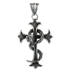Bikerringshop Sterling Silver Snake Gothic Cross Pendant