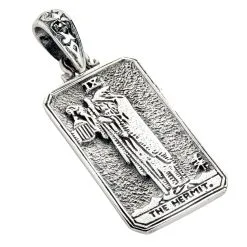 Bikerringshop Sterling Silver The Hermit Tarot Card Pendant
