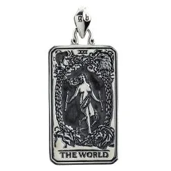 Bikerringshop Sterling Silver The World Tarot Card Pendant